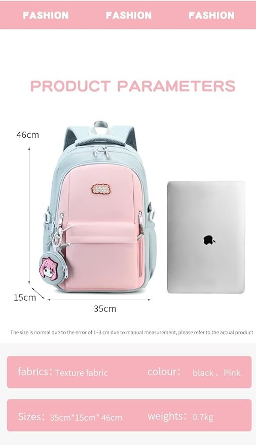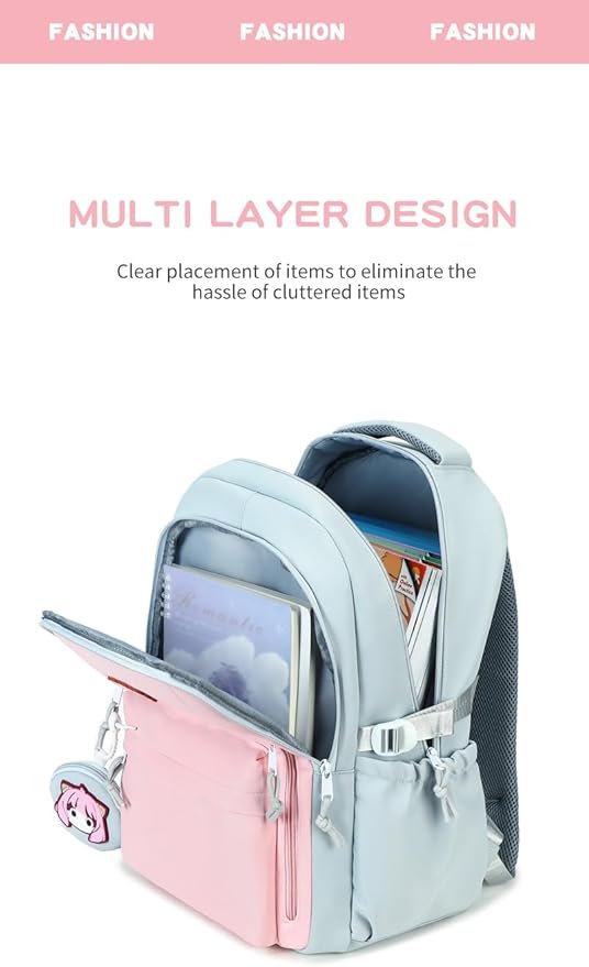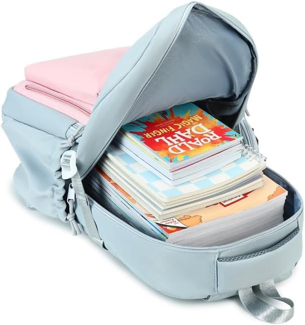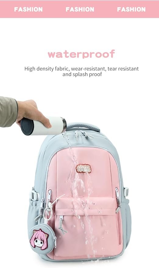 شنطة ظهر مدرسية للبنات – مقاس 15.6 إنش للابتوب – سعة 24 لتر – بينك × أزرق سماوي – مقاومة للماء – تصميم أنيق للمراهقات والطالبات – موديل 607