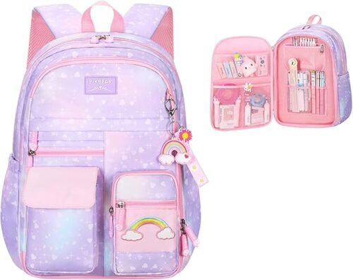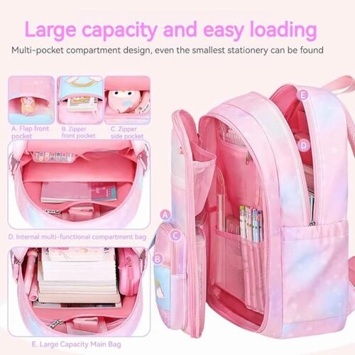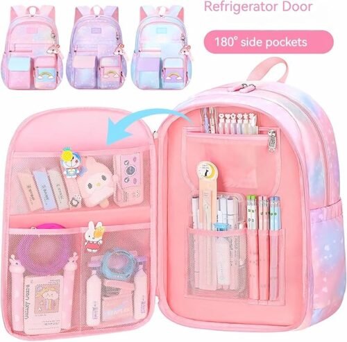 شنطة ظهر مدرسية بسعة ضخمة 24 لتر، مقاومة للماء، بتصميم مريح لحماية الظهر وتقليل الضغط. تحتوي على أكثر من 16 جيب لتنظيم كل أدوات المدرسة واللابتوب. مثالية للبنات من سن 6 إلى 18 سنة.
